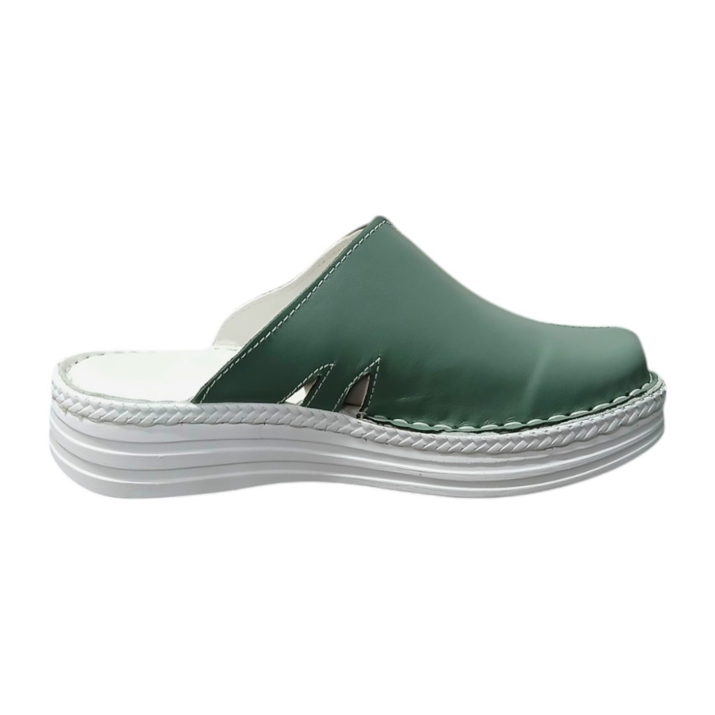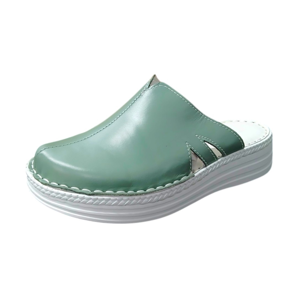 Vigyen természetes frissességet a mindennapjaiba ezzel a zöld színű, kézzel varrott női bőr klumpával, amely a pihentető járást és az egyedi stílust ötvözi.