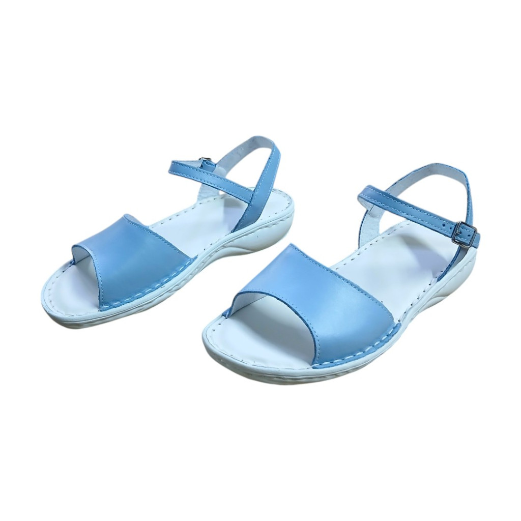 Fedezze fel a kézzel varrott elegancia és a páratlan kényelem tökéletes ötvözetét ezzel a gyönyörű pasztell női bőrszandállal!