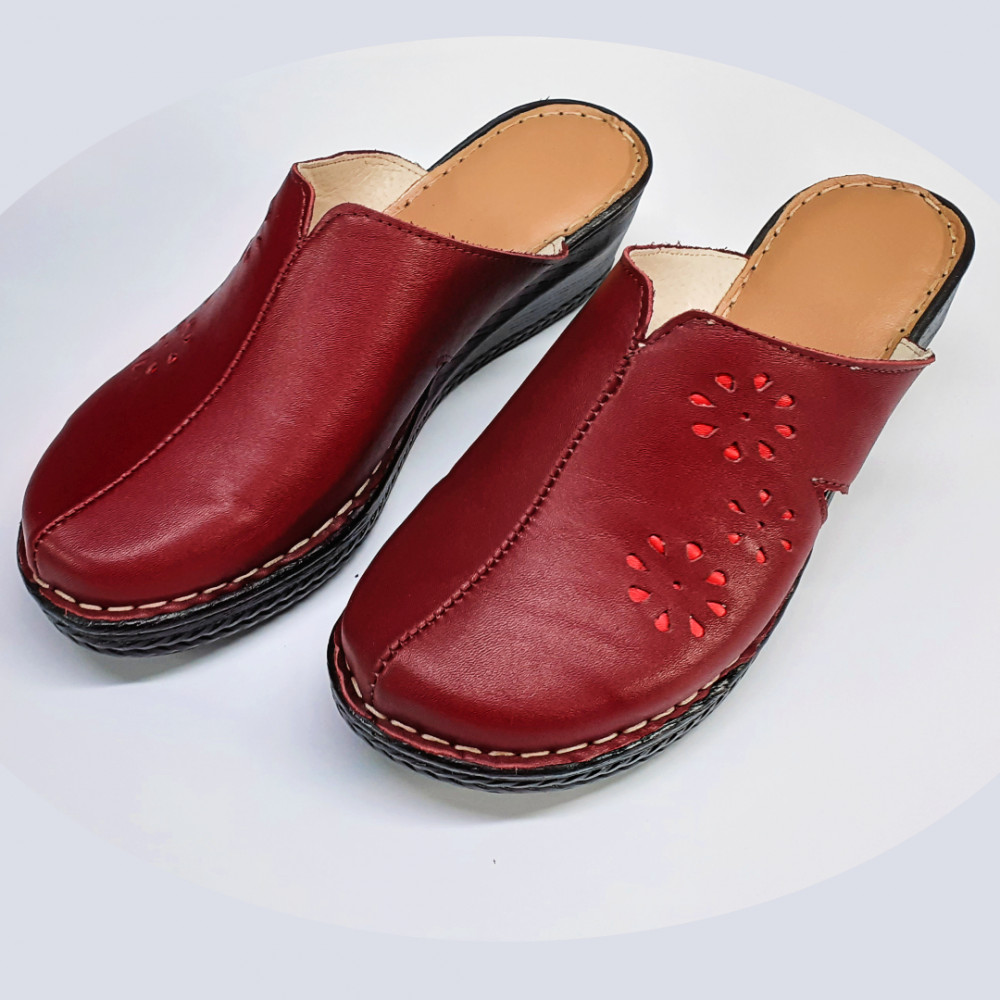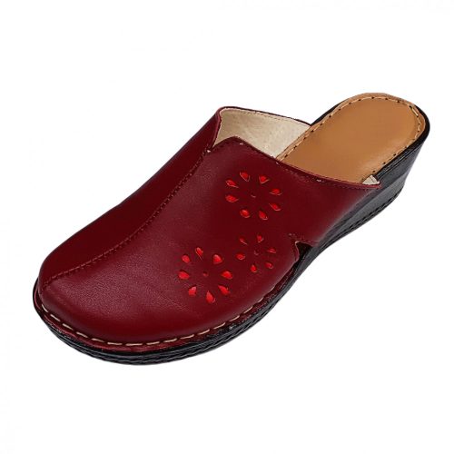 Ez a mély bordó női bőr klumpa a 5,5 cm-es magasított sarkával és az oldalsó díszítésével tűnik ki a többi modell közül. A gazdag bordó árnyalat és a kézzel varrott technológia ötvözete tartósságot és eleganciát sugároz, miközben a minőségi bőr felsőrész biztosítja a kényelmet az egész napos viselés során.