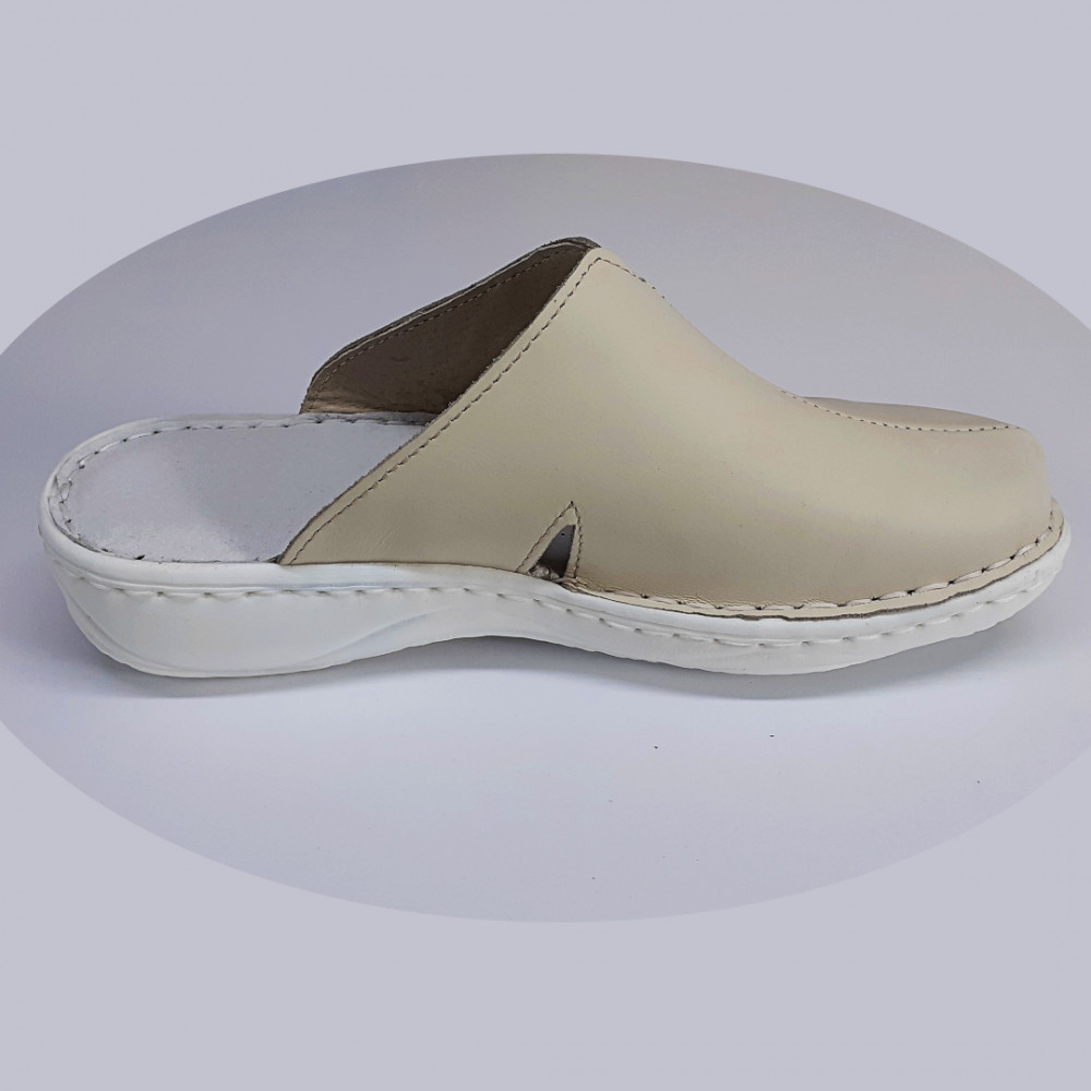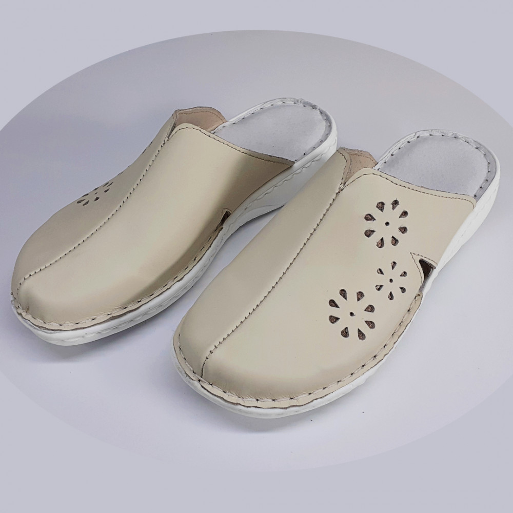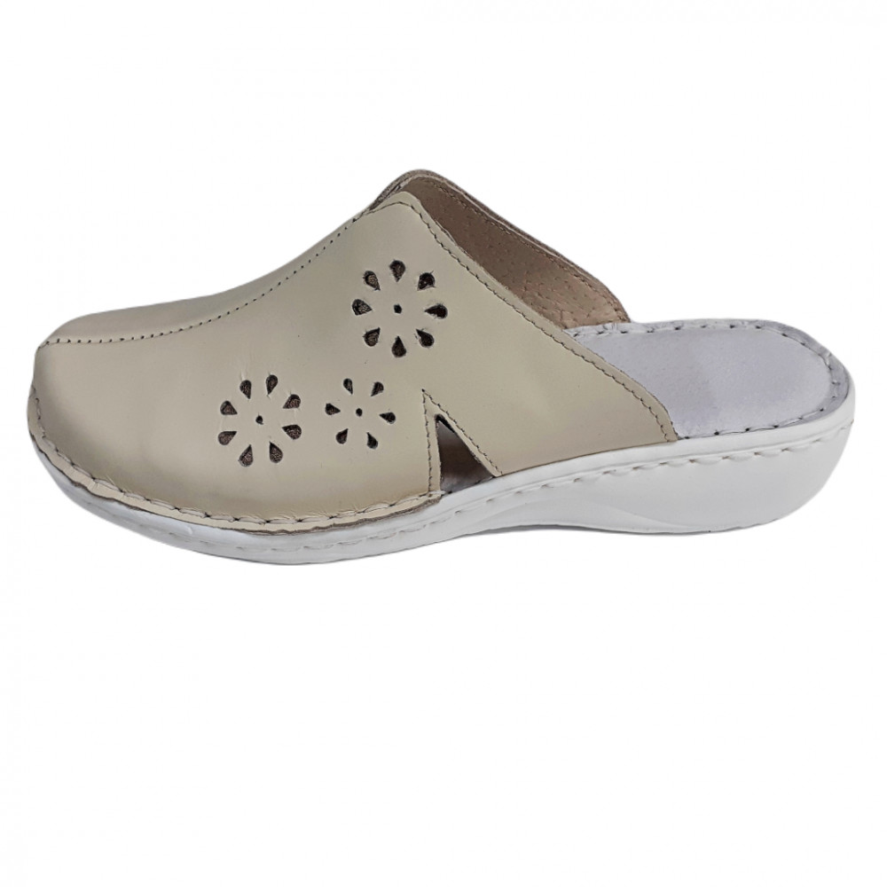 Ez a természetes bézs árnyalatú bőr klumpa az elegáns, áttört virágformájú lyukasztással és a lábfej szabad mozgását támogató oldalsó bevágással válik a mindennapok kényelmes és stílusos kiegészítőjévé.